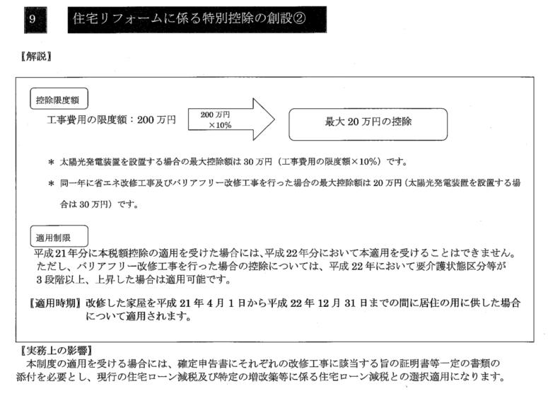 住宅リフォーム特別控除②(平成21年度税制改正)
